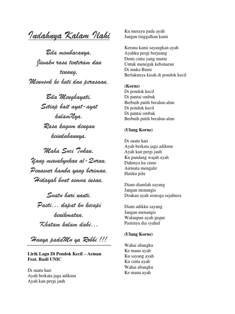 Lirik Lagu Di Pondok Kecil Pdf